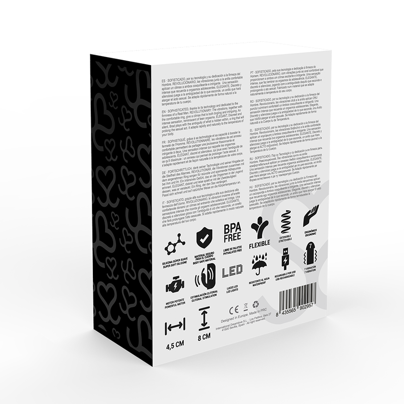 REVOLUCIONARIO, las vibraciones junto a la anilla confortable aplican un climax a ambos cosquilleante e intrigante.  Una sensación intensa que recuerda a orgasmos adolescentes.